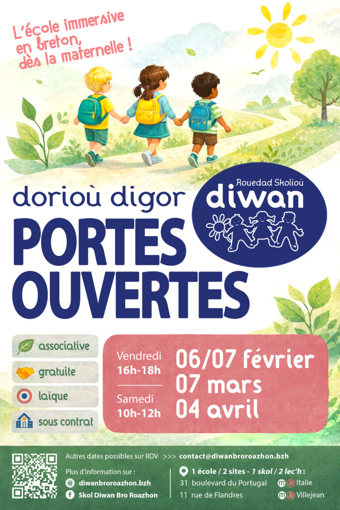 Portes ouvertes de l’école! Dorioù digor ar skol! 06/02 – 07/02 – 07/03 – 04/04